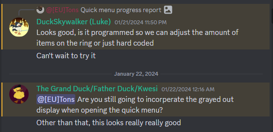 The basic idea for this feature was a way for the player to quickly have access to a set of 9 (In total) equipped items and abilities. One of the things that I pitched as a change to the current state of the game was to change this menu to a radial menu.