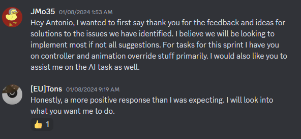 This being my first day interacting with the team I wanted to make a good first impression so I compiled my major gripes with the game into a 6 page document with pictures, diagrams, references to other games and my arguments for and against certain features.